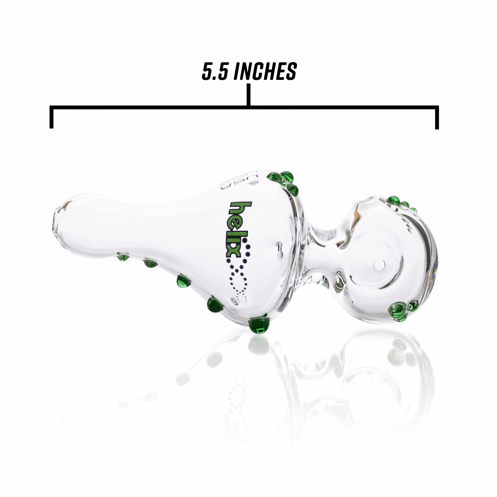 Start by choosing your ideal size, then customize your Helix pipe with your preferred decal color, pure .999 silver fume, colorful glass dots, and optional premium marbles. Every option transforms both the look and personality of your Helix, letting you build a truly one-of-a-kind piece that fits your style.